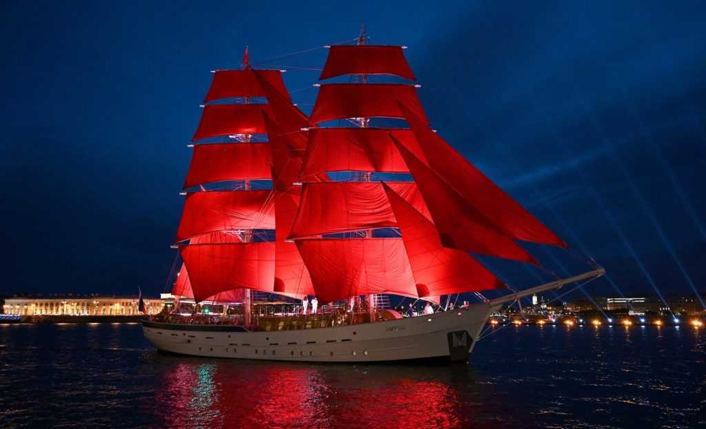 Кульминацией праздника всегда было шествие главного корабля с алыми парусами по акватории Невы. Долгое время для этого подбирались разные корабли. Так с 2009 по 2018 год использовался корабль «Тре Крунур» (Три короны). И только в 2019 городом был приобретён специальный корабль — бриг «Россия», который используется только для праздника «Алые паруса».