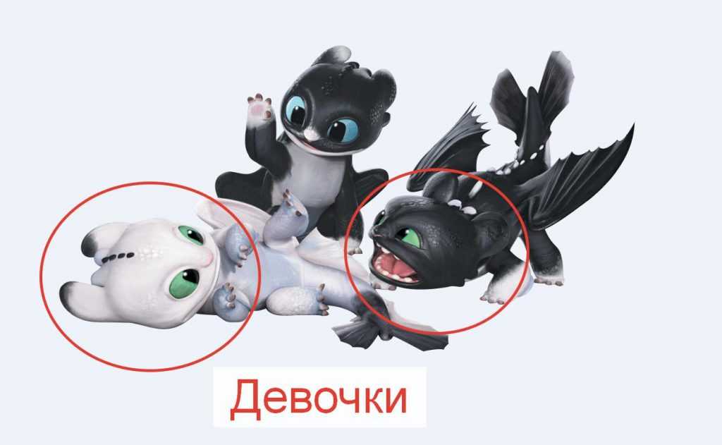 Многие обратили внимание, что у Ночной фурии Беззубика 2 лицевых отростка, тогда как у Дневной фурии всего 1. Поэтому фанаты решили, что пол у драконов определяется именно по этому признаку