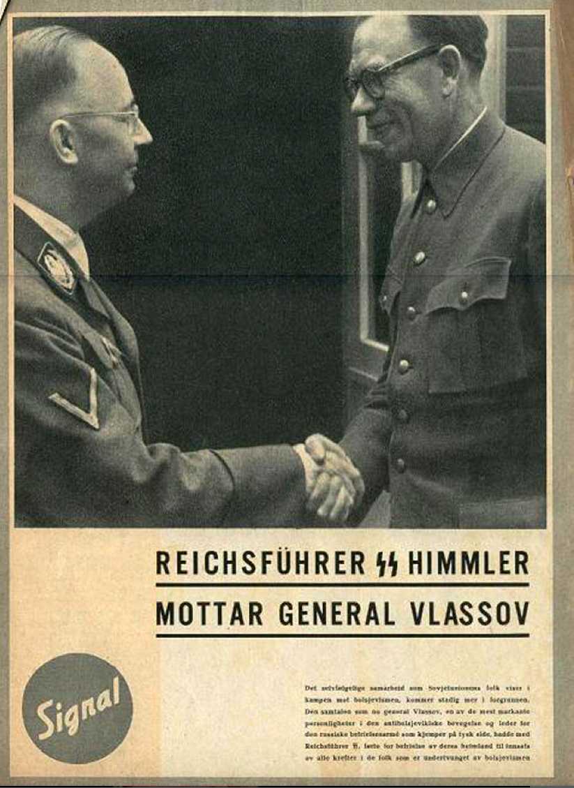 Во время Отечественной войны по личному указанию Гитлера бело-сине-красный триколор в качестве знамени был вручен армии генерала-предателя Власова, которая официально в фашистской Германии именовалась — «Восточный легион СС», и воевала против нашей страны и народа на стороне Гитлера. Этот триколор во всех власовских штабах висел рядом с портретом Гитлера и его штандартом.