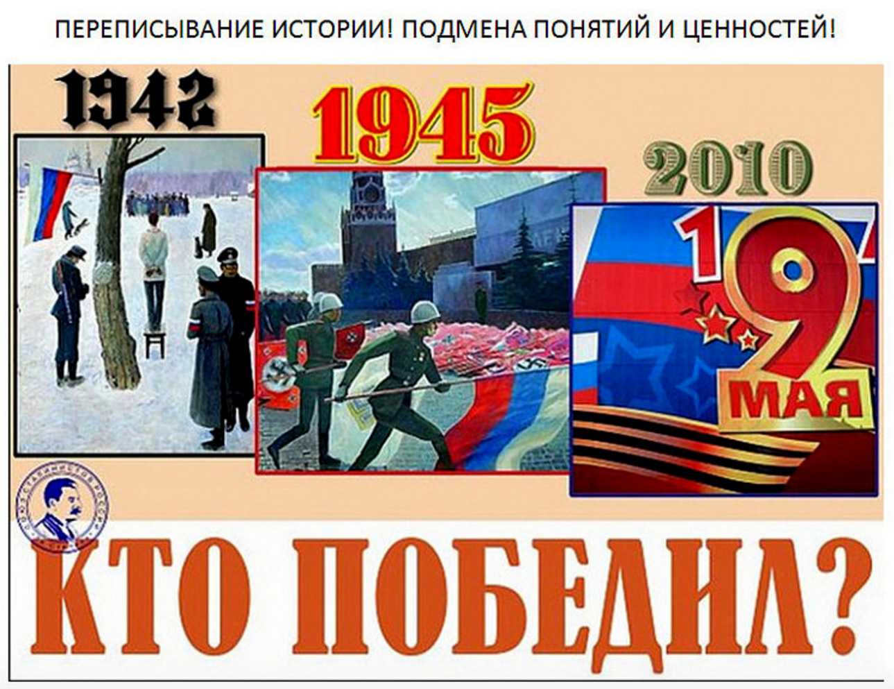 Можно понять молодежь, которая, не зная и не понимая истории, размахивает трехцветными флагами на стадионах, на торжественных мероприятиях и т. п. Но как понять тех ветеранов, которые на торжественных мероприятиях, посвященных Дню Победы, стоя приветствуют вынос Красного знамени и триколора, т. е. двух воевавших друг против друга сторон. Неужели они забыли, что на Параде Победы в Москве 24 июня 1945г. этот власовский триколор был брошен к подножию Мавзолея вместе с другими фашистскими знаменами.