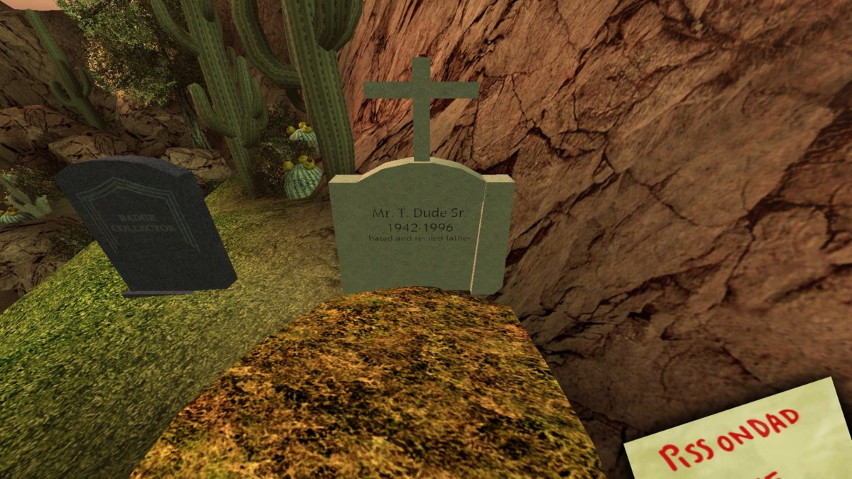 Данная локация открывается в среду, когда главному герою по имени Чувак необходимо «слить свой топливный бак» на могилу своего отца (исходя из надгробия в игре его зовут Чувак Старший), дабы, как сам выразился главный герой, «поздравить своего старика».