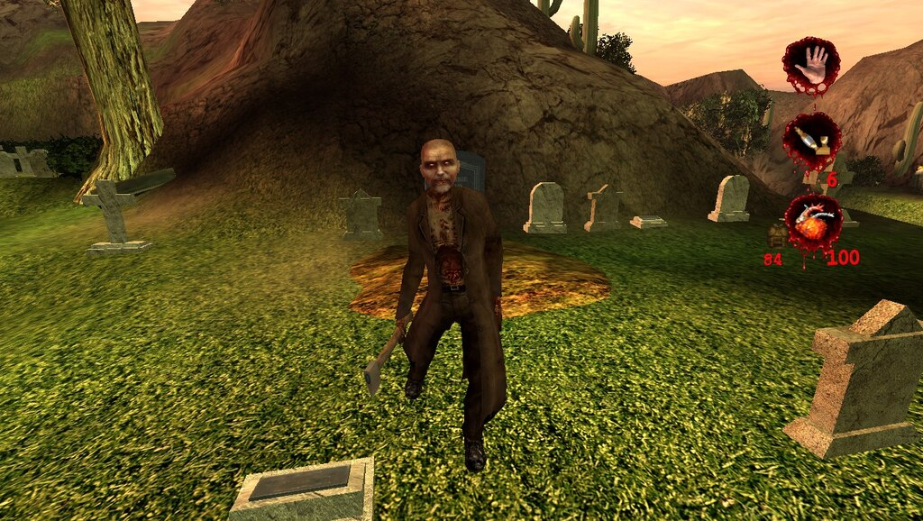 Но мало кто знает, что если случайно направить свой «заправочный пистолет» не на ту могилу, то его ожидает довольно неприятный сюрприз в виде зомби с топором, который будет говорить случайные фразы граждан Парадиз и будет всячески вас пытаться забрать к себе в могилу, а если говорить по-простому – убить.