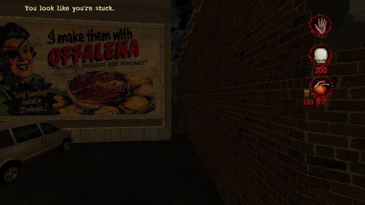 Сама же локация «Кладбище» располагается позади церкви «Богоматери ненасытной алчности», в которой мы вчера «исповедовались в грехах». Надгробия же на кладбище имеют шутливые названия по типу «Teen Sniper» или «Rape Clown», которые говорят нам о том, что здесь «похоронен» контент, вырезанный из финальной версии игры. На кладбище также есть небольшая часовня.
