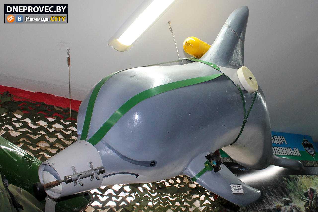 – Одна из изюминок музея и любимый экспонат всех детей – макет боевого дельфина, – указывает председатель ветеранской организации на «парящее» под потолком пластмассовое млекопитающее. – Не все знают, но в Советском союзе было три океанариума: на Черном море, в Тихом океане и Мурманске, в которых обучали дельфинов, сивучей и тюленей. Главное, к чему их готовили – поиск и подъем затонувших изделий, охрана водных акваторий, примыкающих к спецобъектам, поиск и уничтожение вражеских разведчиков.