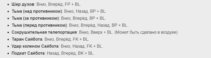 Kombo attacks. Стандартные комбо: (преимущество на блоке после каждого удара / преимущество при попадании после каждого удара / полная анимация после каждого удара)