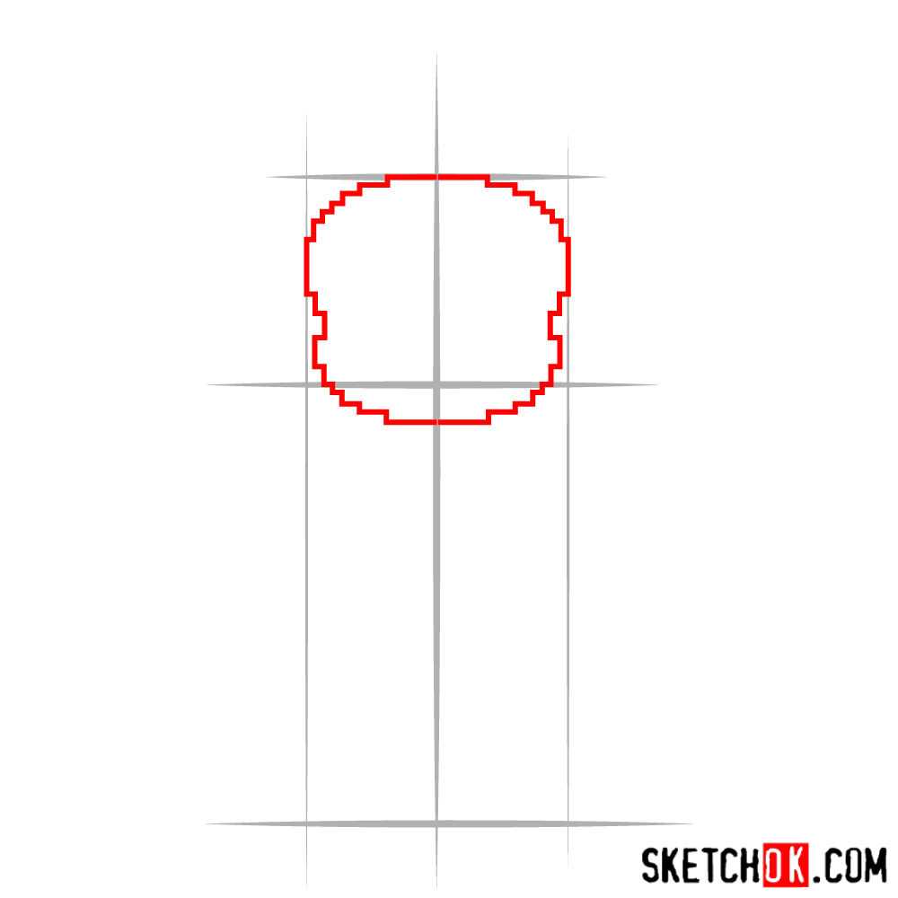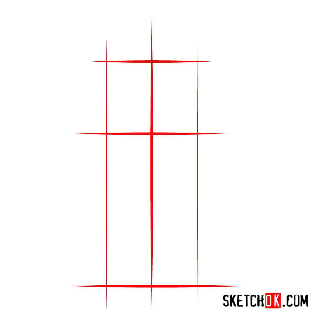 The initial images in our tutorial will guide you through this process, with red color indicating the current step, grey for the basic proportions sketch, and black for previously drawn lines.