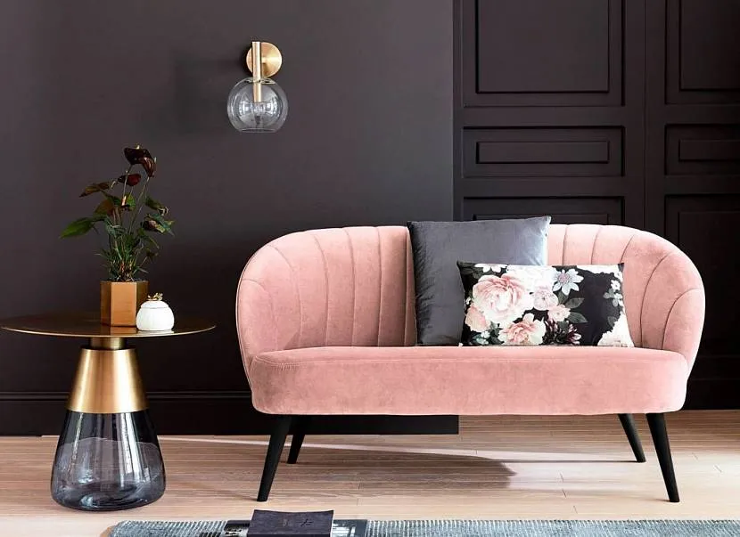 Украсить даже самую скучную комнату можно всего одним диваном с розовой обивкой. При этом желательно проследить, чтобы этот предмет не стал единственным центром притяжения внимания, для чего в разных местах размещают несколько других ярких акцентов.