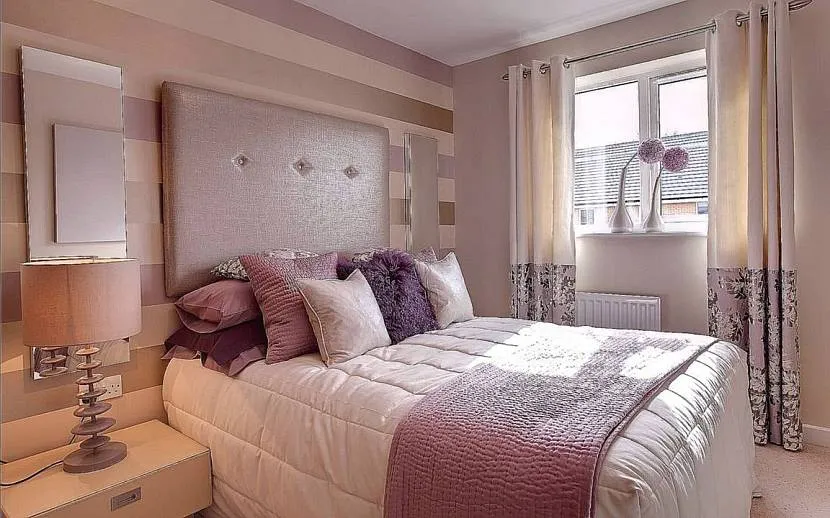 Желательно оформить таким цветом отдельную зону помещения. Внутри женской спальни подиум, занавески, покрывало могут подчеркнуть, что здесь располагается место для отдыха.