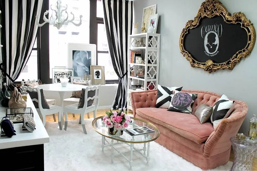 С помощью розовых аксессуаров можно исправить недостатки внутри помещения. Для этой цели отлично подойдут светильники, коврик или большой палас на полу, текстиль, фактурные материалы.