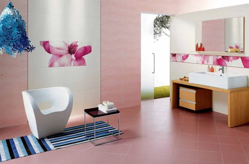Сочетание цветов: розовый в ваннойИсточник krovati-i-divany.ru