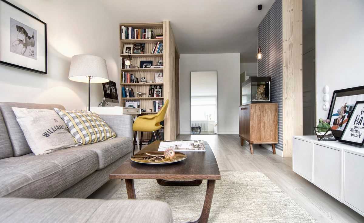 3.1 Студийные пространства и совмещенные комнаты. Когда в большой комнате есть несколько зон с разным функциональным назначением, то белые стены могут стать отличным связующим звеном, соединителем всего пространства общей интерьерной концепцией. Так сделано в интерьере, которые показаны выше, где спальня совмещена с гостиной в одной комнате.