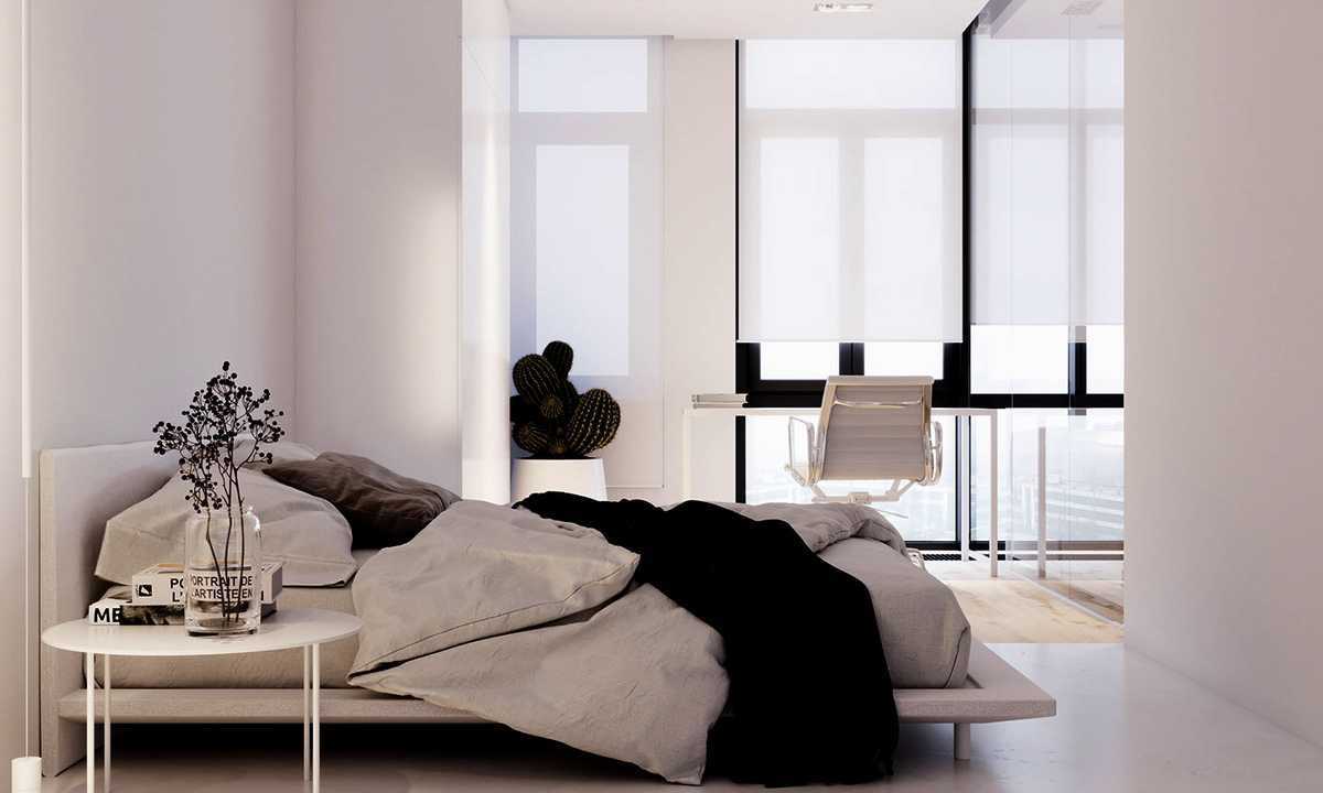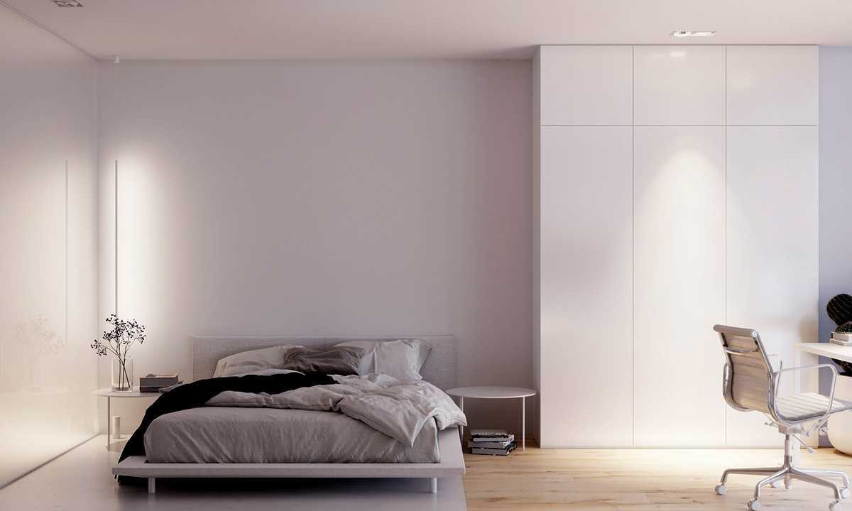 Белая спальня в стиле минимализм