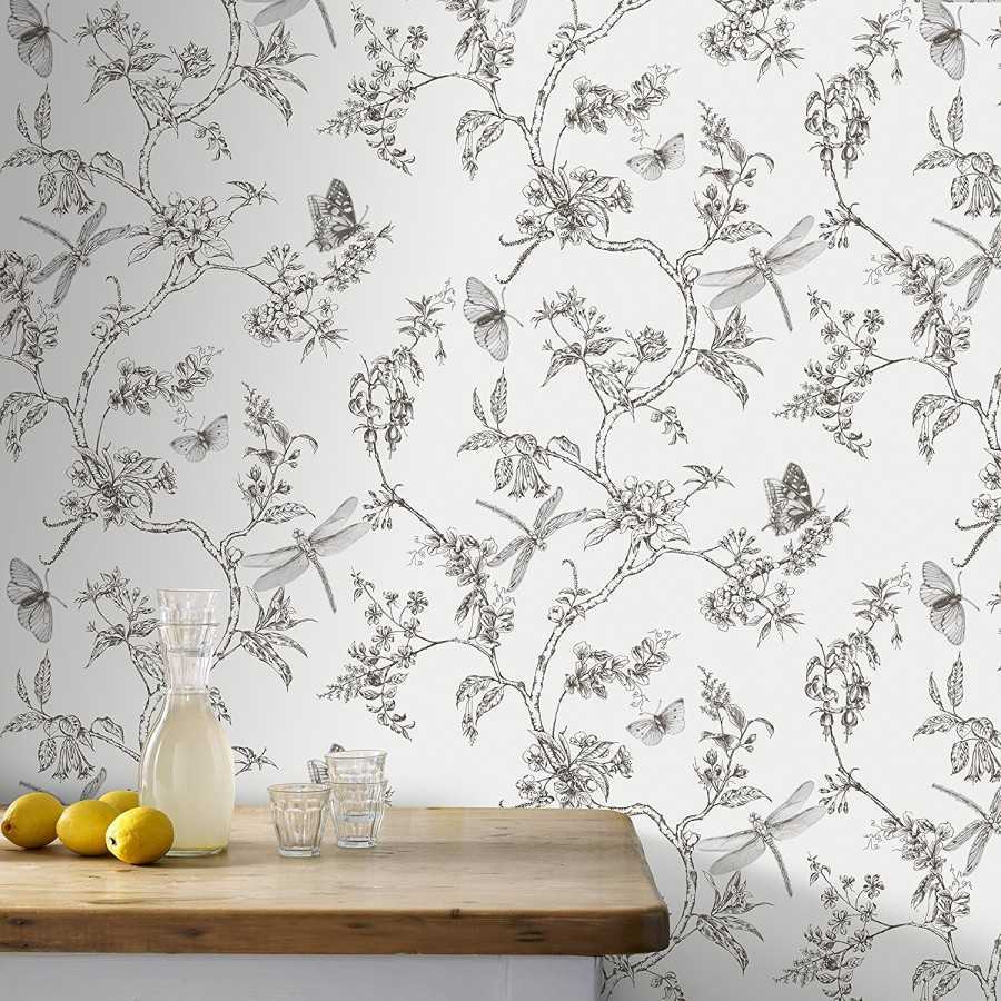 Черно-белые обои в гостиной