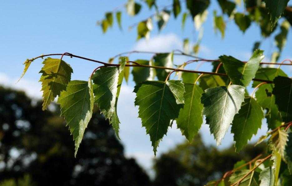 Birkenzweig mit Blättern und Kätzchen isoliert