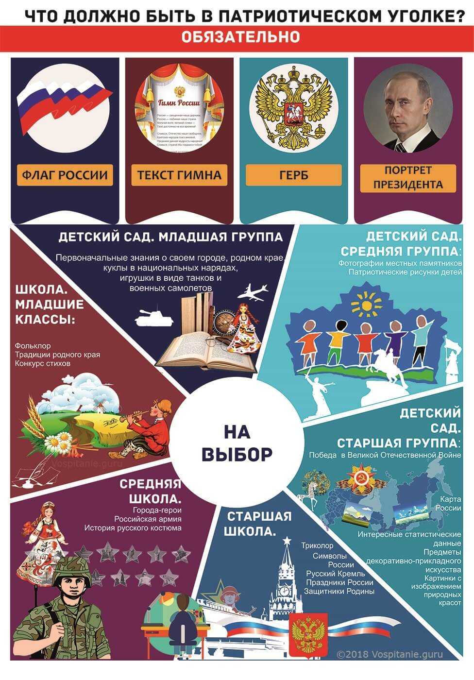 Важно, чтобы патриотический уголок не только соответствовал требованиям ФГОС, но и имел необычное оформление, которое будет привлекать интерес детей. Правильная наполненность наглядным материалом — это необязательно официальные символы государства стандартного типа