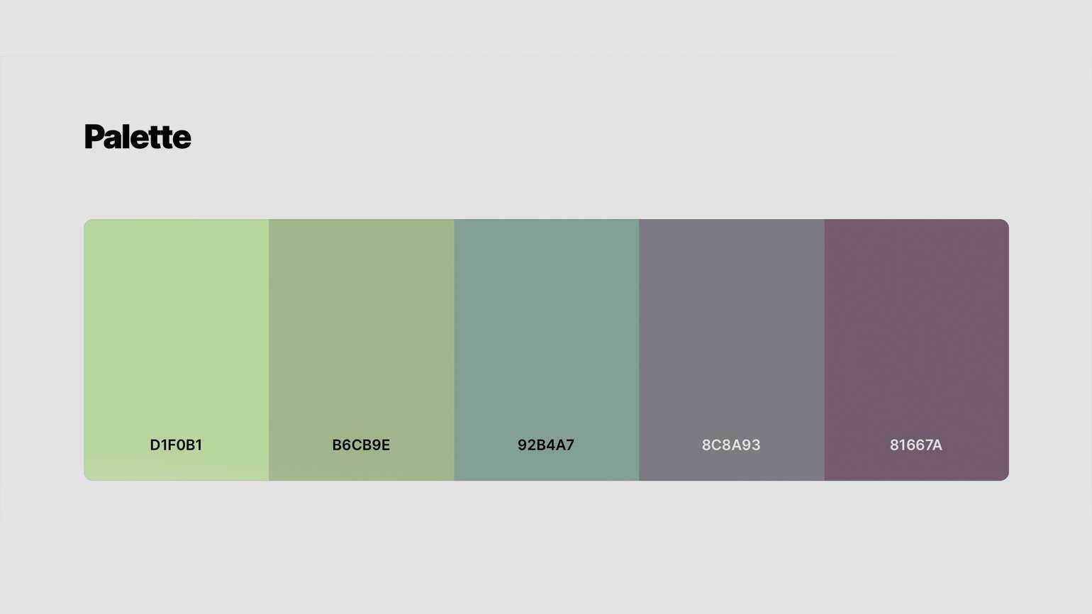 Готовая цветовая схема с тремя оттенками зелёного и двумя оттенками лаванды. Она создаёт впечатление оптимистичного настроя, гармонии и стабильности.