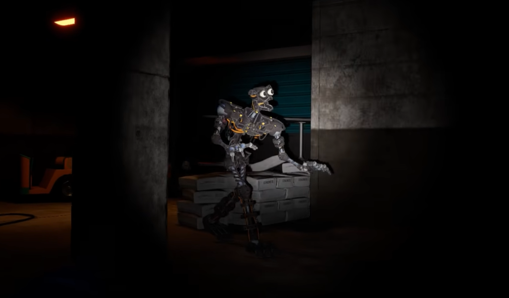 У правой стенки стоит карт с роботом на водительском месте. Но у него нет головы – появляется задание «найти голову бота». Поднимитесь по металлической лестнице и поищите ящики около красной двери. Когда Грегори подойдёт поближе, из одного выскочит бот – у него отвалится голова. После того, как вы её поднимете, активируется новое задание, касательно ремонта головы бота.