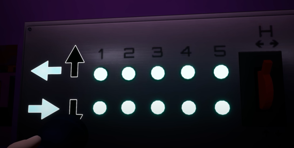 С помощью рычага и кнопок вы будете изменять направление движения секций лабиринта. Алгоритм действий следующий: