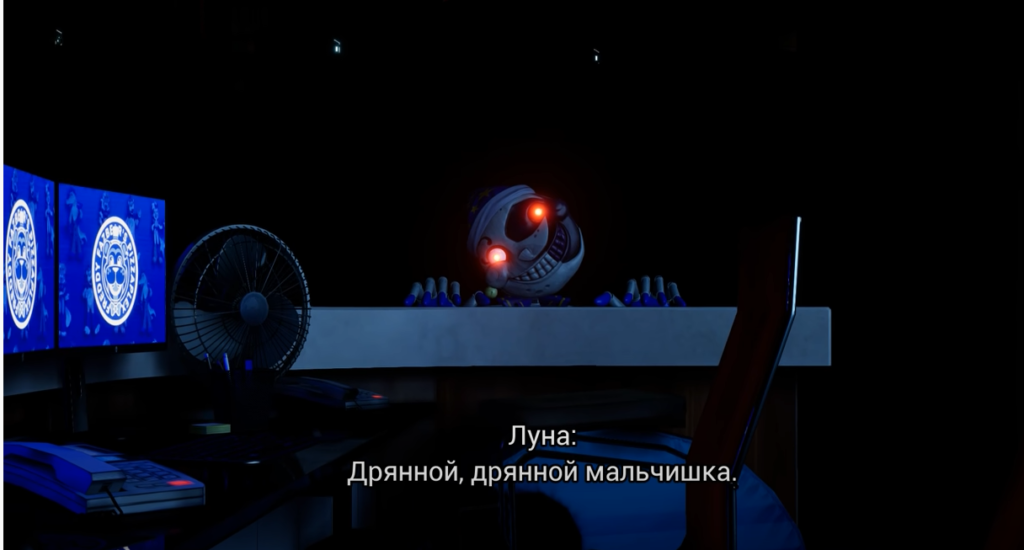 Здесь вы найдёте пропуск охраны, после чего погаснет свет и Sundrop превратится в Moondrop (Луну) – монстра, от которого необходимо сбежать. Слабое место этого босса – яркий свет. Вам необходимо задействовать 5 отключенных генераторов, чтобы спокойно миновать эту зону. В качестве «оружия» можете использовать фонарик – его свет, попадая на Луну, замедляет монстра. Генераторы можно найти идя вдоль проложенных по полу кабелей. Если двигаться от станции охраны, то их расположение будет следующим: