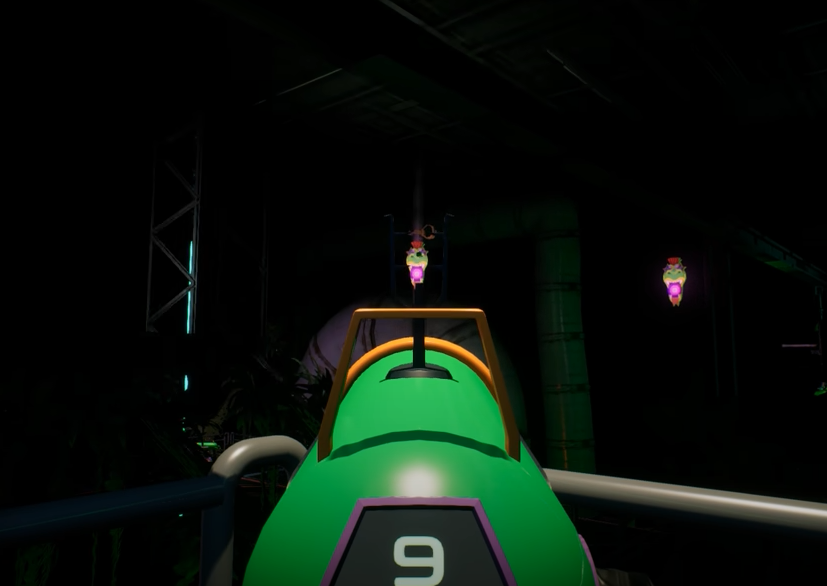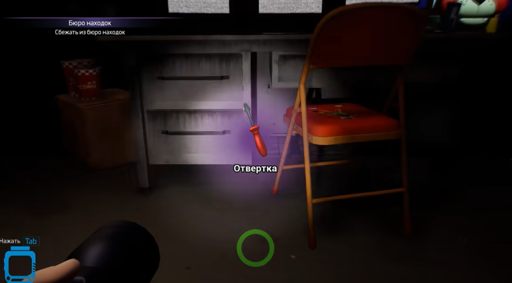 Далее предъявите боту у лифта пропуск и отправляйтесь на нём непосредственно в сам аттракцион. Съехав вниз на эскалаторе проберитесь в дом через яму с шарами. В левом углу находится дверь в ещё одно помещение – там на стойке стоит сумка. Следующий пункт назначения – офис службы безопасности. В нём найдётся пропуск в лабиринт и FAZ-камера.