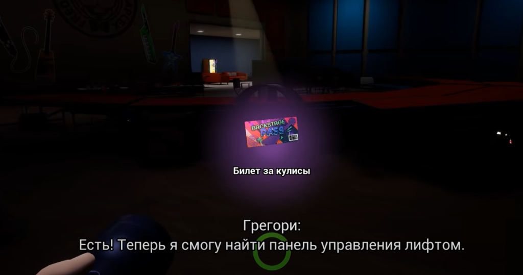 Но есть и другой вариант – поверните влево и идите к синим воротам. Увидев боксы с картами, проходите в дверь, чтобы взять коробки с апгрейдами Фредди. Пройдитесь по боксам – в одном из них найдётся пропуск на танцы. Идите вглубь помещения и найдите сумку с запиской. В ней рассказывается о том, как победить Рокси.