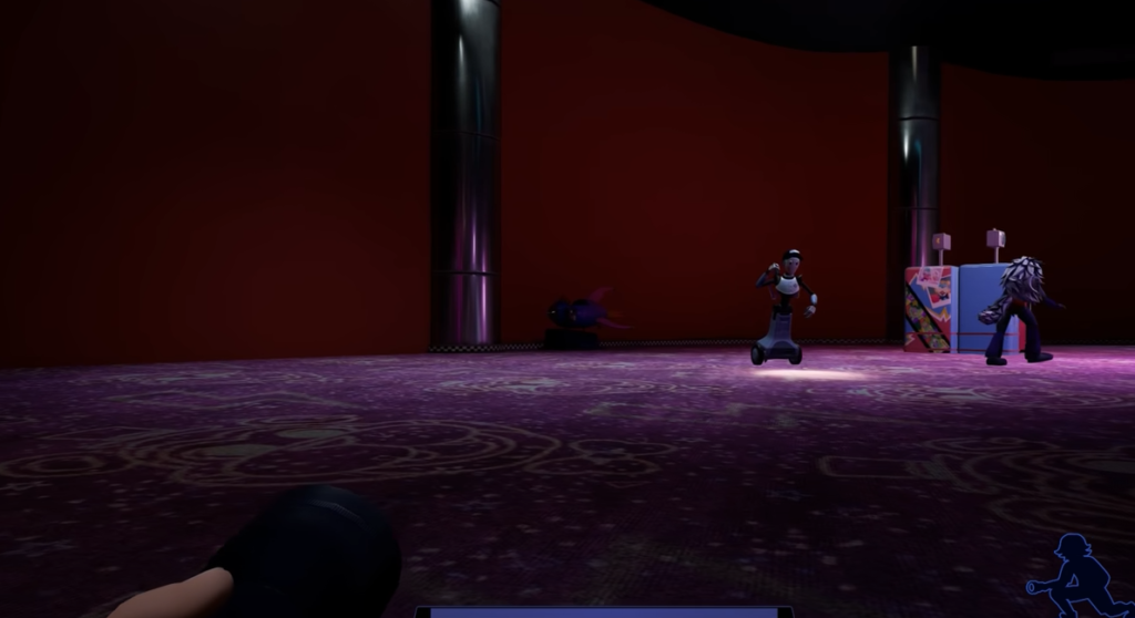 Запчасти для робота есть только за кулисами, но для того, чтобы попасть туда, необходим билет. Получить его можно в зале для репетиций за сценой. Проход к нужному месту контролируют боты и Рокси, причём в разных коридорах. То есть, Рокси может зайти в узкий коридорчик, где дежурят боты, исключительно в случае поднятой последними тревоги. Проходя коридор, прячьтесь от охранников в расположенных вдоль него комнатах или за укрытиями. Но даже при обнаружении Грегори задание не будет провалено – всегда есть возможность скрыться в любом направлении.