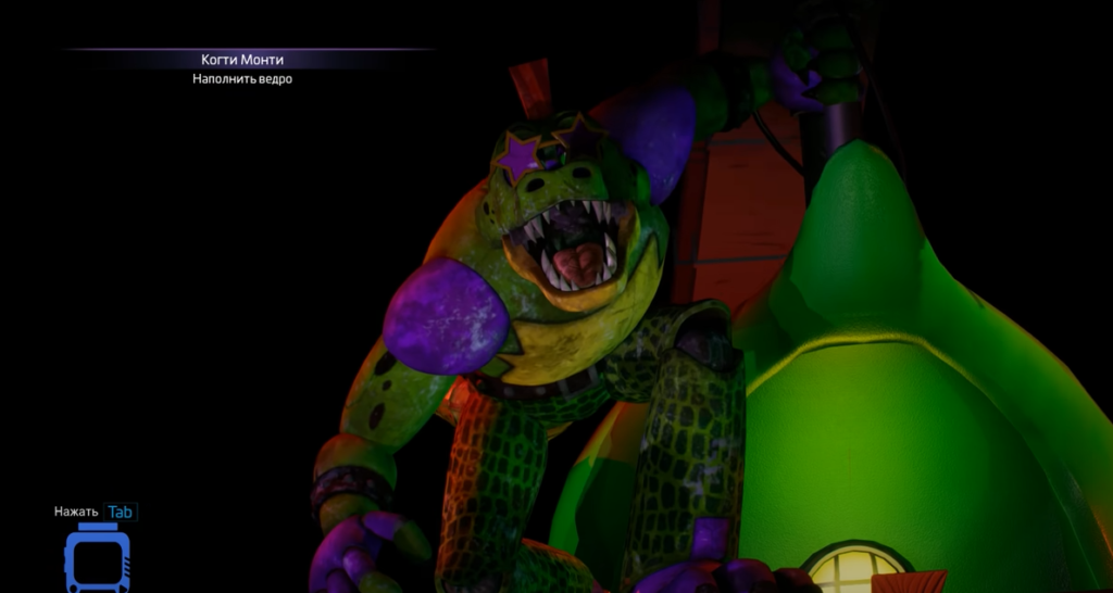 Не допустив ошибки вы попадёте в лабиринт. Пройдя через него отправляйтесь в вентиляцию, на выходе из которой начнётся противостояние с Монти. Ведите обстрел из зелёного орудия, стараясь попасть в фиолетовые точки. После этого, спускайтесь вниз и обстреливайте фиолетовую мишень из разных орудий, которые в большом количестве расставлены по всей локации. Попадая в неё, снаряды рикошетят в ведро. После того, как оно полностью наполнится, нажмите на зелёную кнопку. Монти повержен, и вы можете забрать когти Монти. Покиньте локацию через вентиляцию.