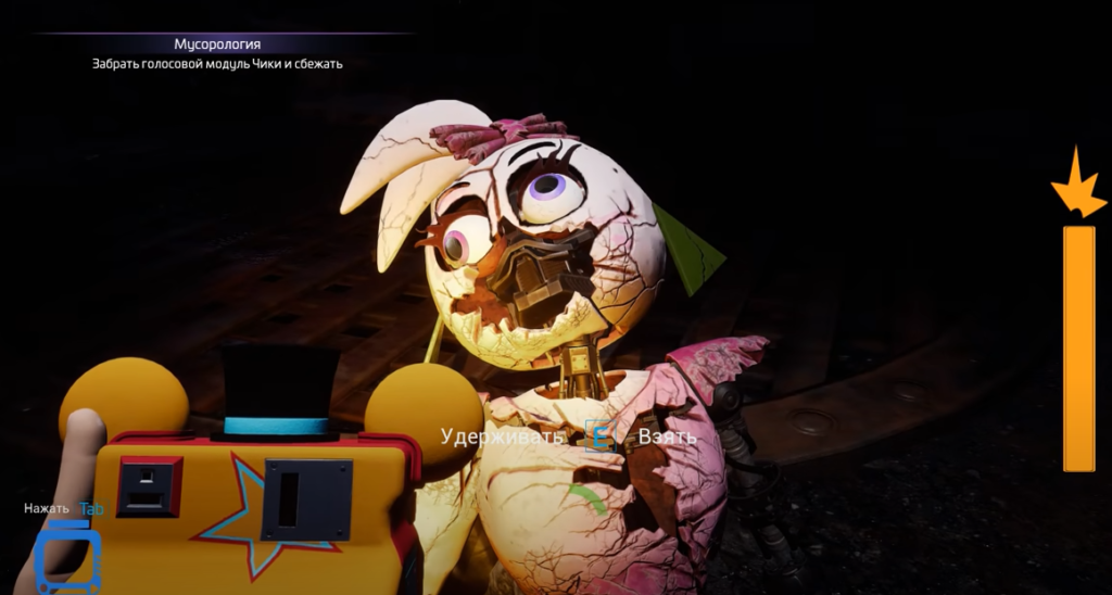 Для получения возможности войти в комнату Чики понадобится пятый уровень пропуска. Где его взять зависит от того, какую сюжетную линию вы выбрали. Если первой была посещена погрузочная платформа, то для получения пропуска нужно идти в призовой уголок и наоборот.