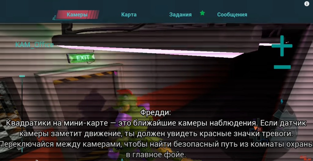 Здесь вам нужно разблокировать вкладку «Камеры» на часах. Нажмите и удерживайте зелёную кнопку на столе, чтобы получить картинку. Теперь вы сможете видеть, что происходит в коридорах. Найдите Чику и определите алгоритм её движения. Постройте безопасный маршрут, исходя из этого. Двигайтесь позади пригнувшись. Если всё пройдёт нормально, вы окажетесь в вестибюле – его двери автоматически заблокируются до 6:00 утра.