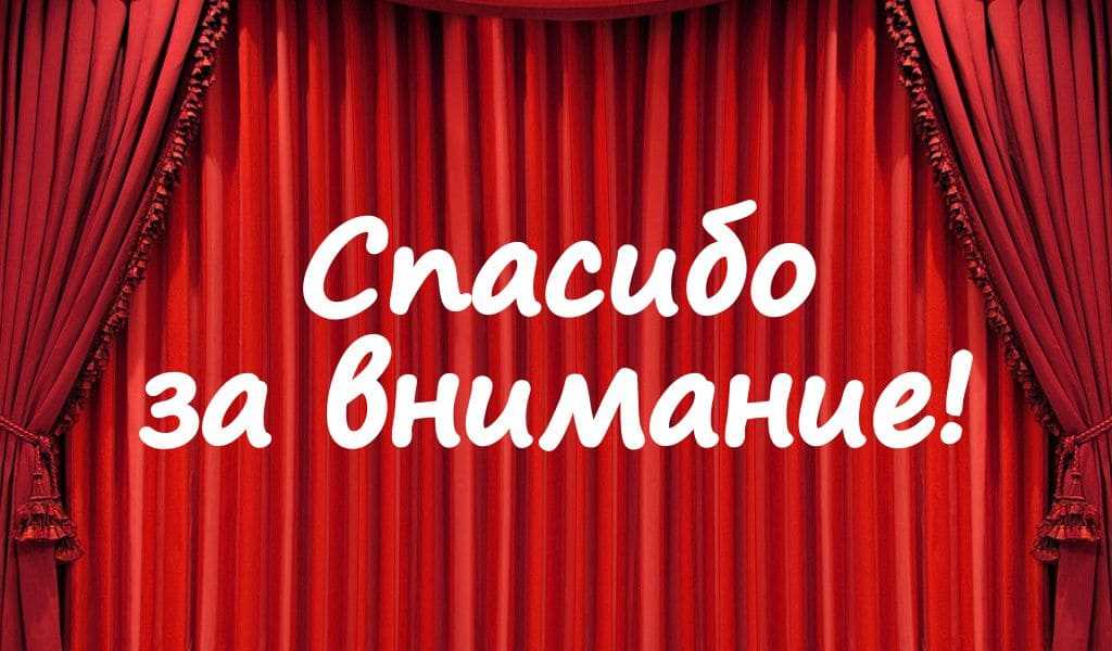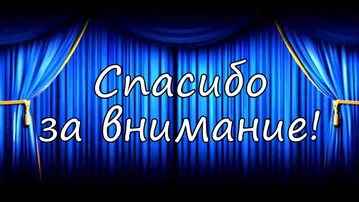 Картинка с синим занавесом и надписью «Спасибо за внимание» для окончания вашей презентации