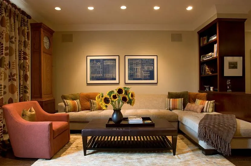 Насыщенные тона с перевесом в красный – самодостаточны, средне-бежевый будет рядом сними играть роль нейтрального оттенка.