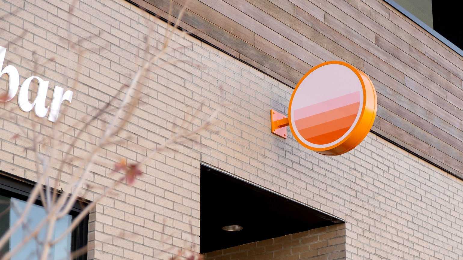 Градиент от яркого оранжевого к очень светлому розовому в айдентике для салона окрашивания волос. Это сочетание цветов призвано вызывать ассоциации с «поцелуем солнца» и лёгким игривым настроениемИзображение: Sweep Balayage Bar / дизайн студии Ordinary Things