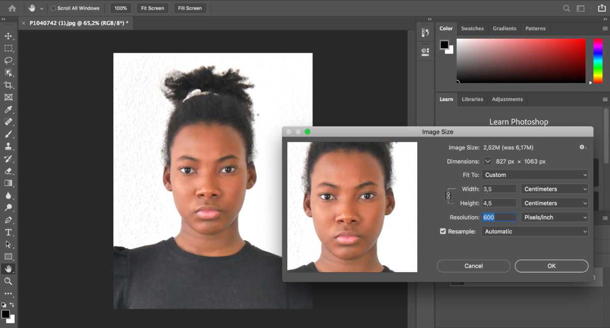 Как изменить размер фотографии до 35 мм x 45 мм в Фотошопе?