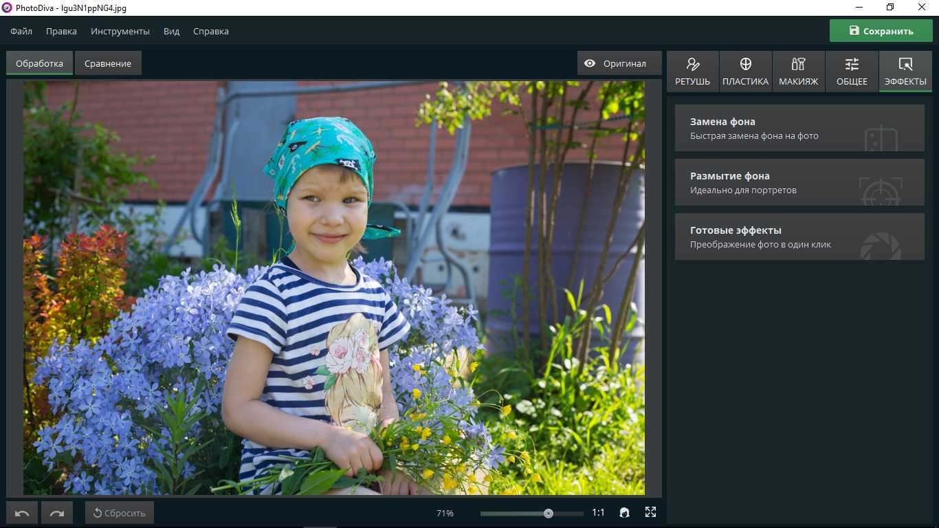 Если благодаря технике «заблюрить» задний план не удалось, то не все потеряно. Исправьте ситуацию, воспользовавшись профильным софтом. PhotoDiva — программа для размытия заднего фона на снимках. С ее помощью вы сможете за пару действий превратить обычную фотографию в произведение искусства.