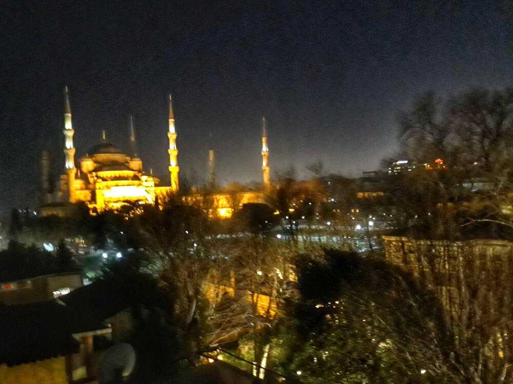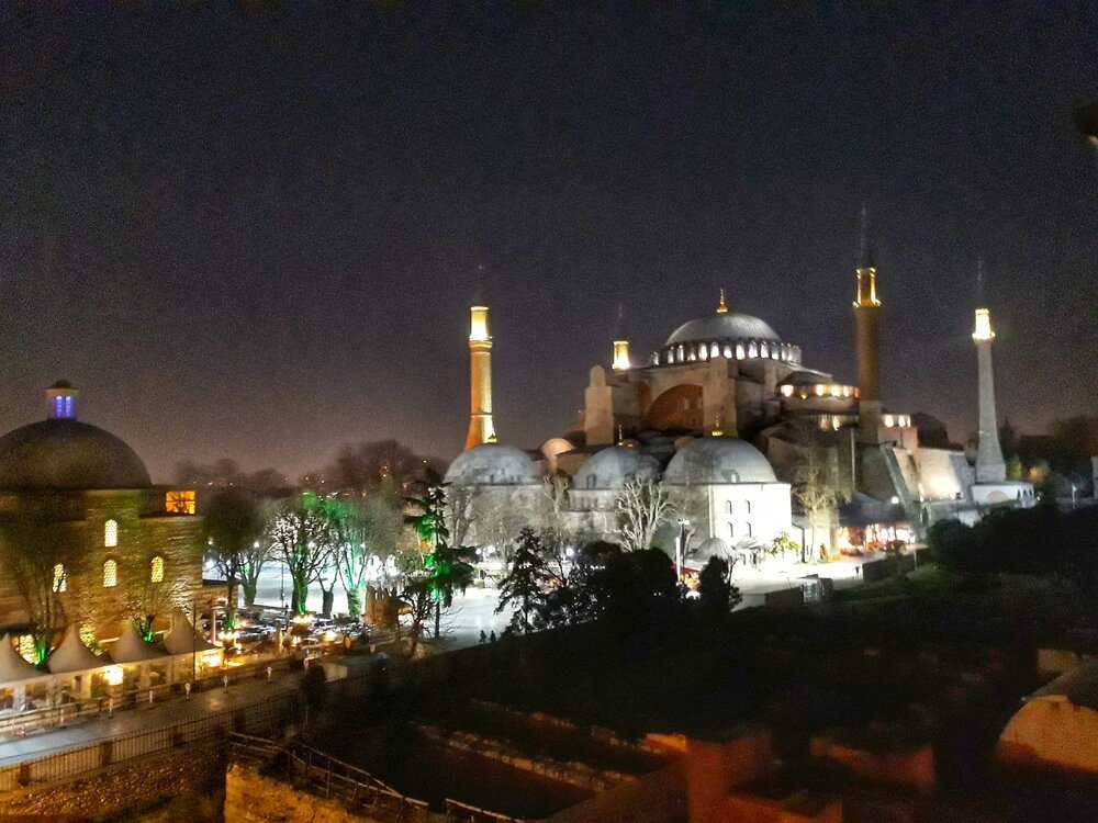 Ночной вид на Айю-Софию с террасы ресторана Севен Хиллс