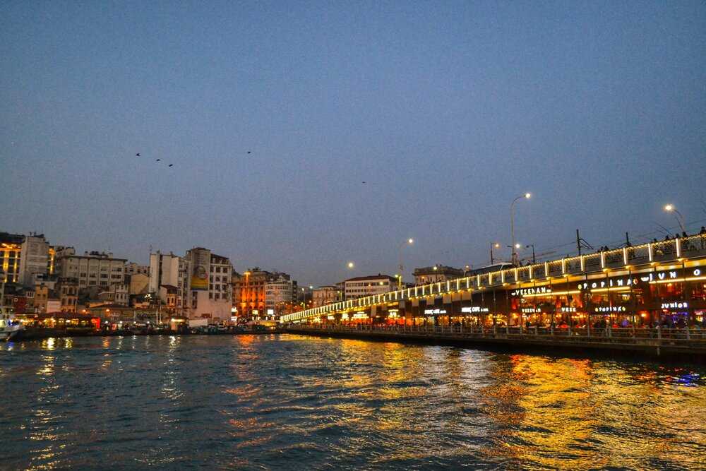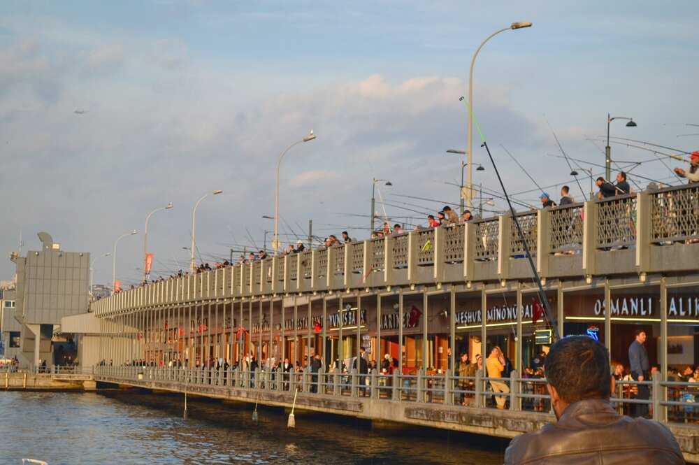 На Галатском мосту можно ощутить весь городской колорит, аромат свежевыловленной рыбы, попробовать бутерброд Балык Икмек и выпить турецкого чая, наблюдая за уплывающими паромами. В любое время дня и вечера на мосту получаются удачные фотографии. Вид на Галатскую башню или мечети, на ночной город украсят каждый кадр.
