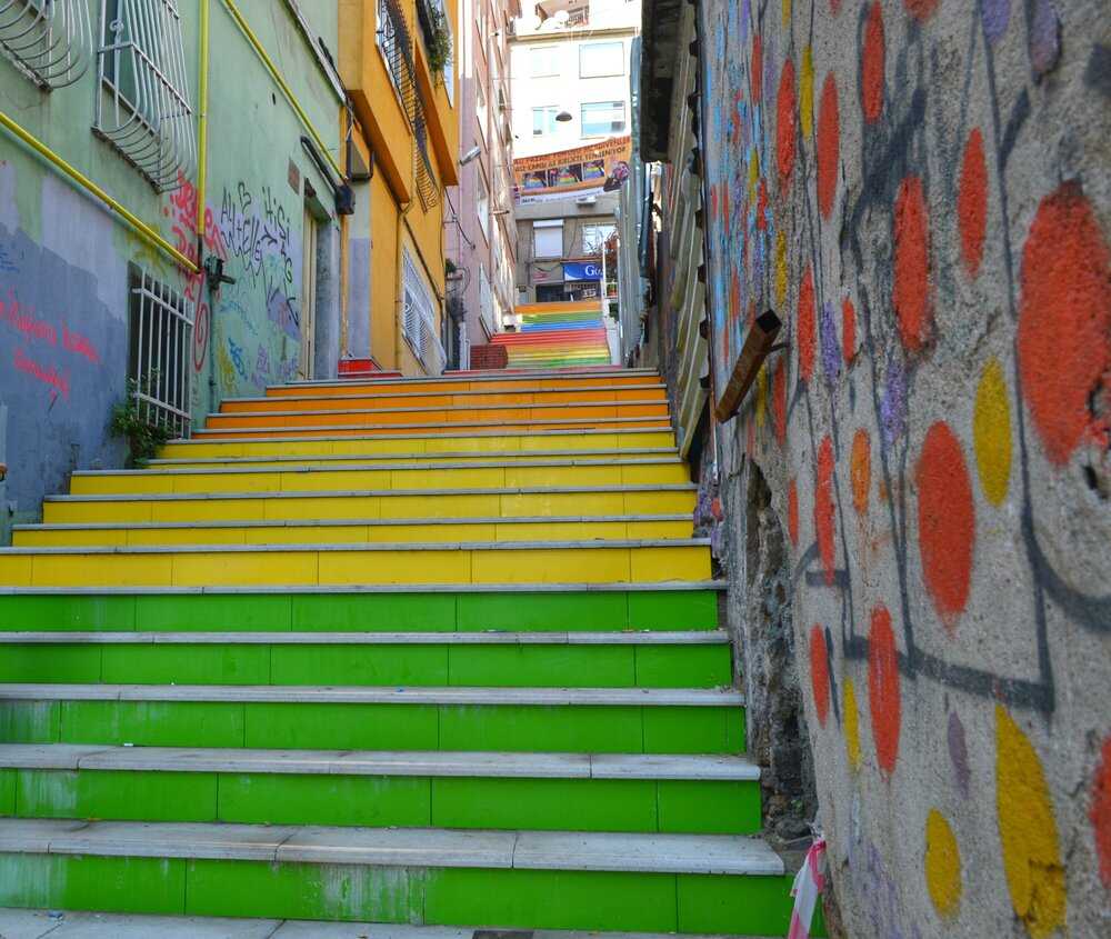 Турецкий пенсионер Хюзйин Сетинель потратил четыре дня работы и около 1000 $ на краску, чтобы украсить лестницу района. Местные рассказывают, что правительство пыталось закрасить ступени серым цветом, но сторонники пенсионера устроили протест, покрасив и другие лестницы в радужные цвета. Поэтому не удивляйтесь, что две лестницы-радуги находятся недалеко друг от друга. Первая облупленная, давно не перекрашивалась. Если найдете ее, то проходите мимо. Следующая, яркая и обновленная — это и есть ваша цель. Это место — олицетворение позитива и радости, а фотографии отсюда есть не у каждого трэвел-блогера.