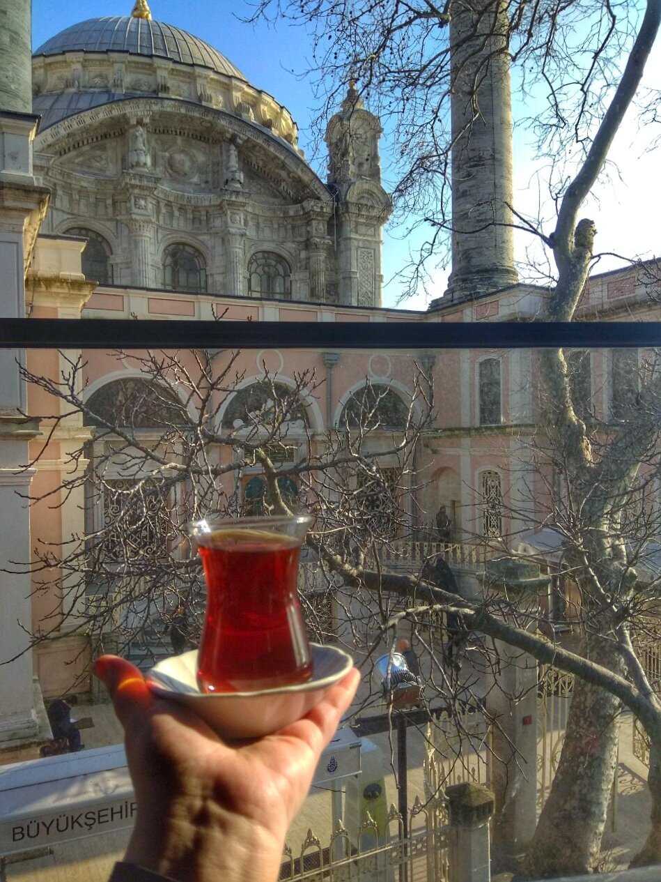 С террасы ресторана открывается сногсшибательный вид на море, Принцевы острова, мечети Айя-Софию (Ayasofya Müzesi) и Голубую (Sultanahmet Camii). Знаменитые турецкие фотографы там устраивают съемки, а путешественники мечтают поймать волшебные кадры для Инстаграм.