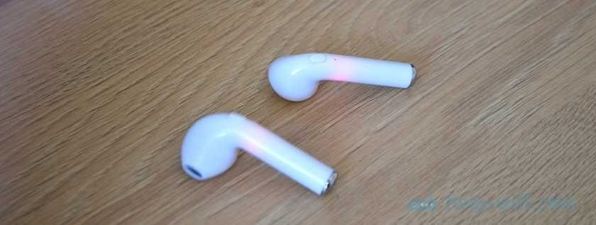 Идет синхронизация между наушниками. Правый наушник должен подключиться к левому, или наоборот. Только после этого их можно подключать к телефону, компьютеру и т. д. Для примера покажу, как это выглядит на дешевых китайских наушниках.
