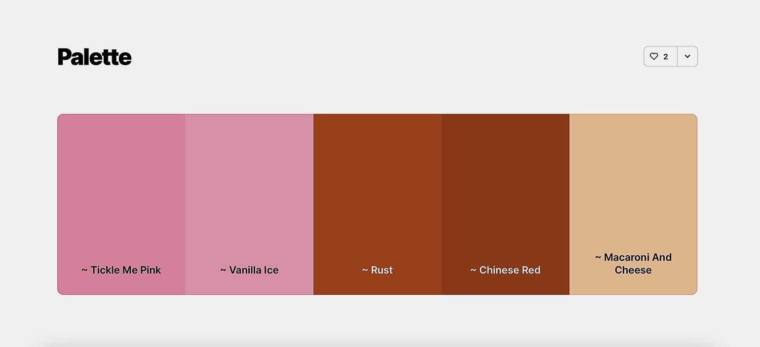 Готовая цветовая схема: благодаря оттенкам ржавчины и сургуча барби-розовый здесь звучит изысканно и экстравагантно, а не легкомысленноСкриншот: сайт Coolors / Skillbox Media