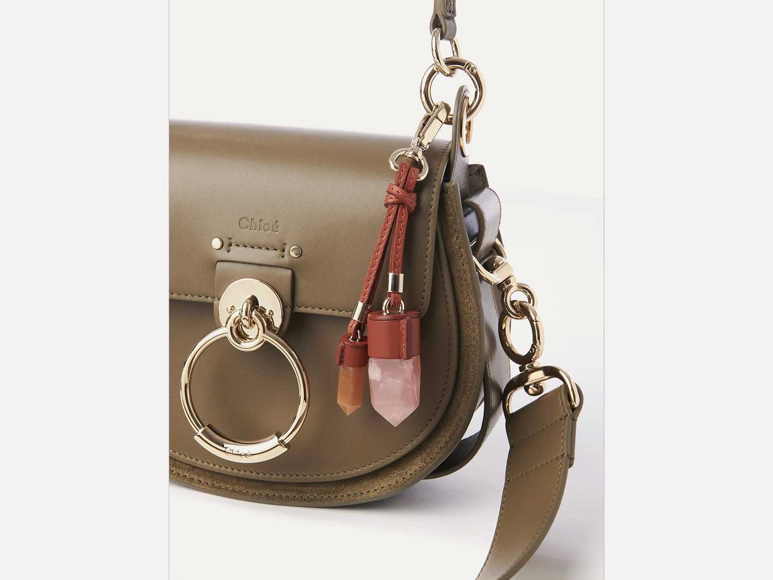 Палитру этой подвески для сумки создают розовый кварц, красный авантюрин и терракотовый оттенок кожи. Такое сочетание цветов характерно для расслабленного богемного стиляФото: Chloe
