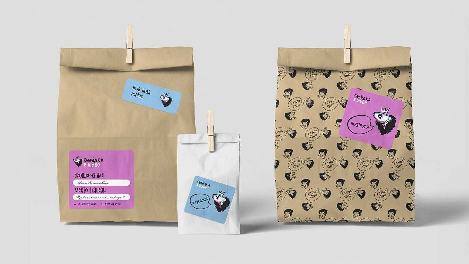 По замыслу дизайнеров, в айдентике для сети кулинарий «Селёдка в шубе» розовый — это цвет, в который красит другие продукты свёкла. А голубой может означать море и рыбу — или просто работать как хороший и привлекательный контрастИзображение: «Логомашина»
