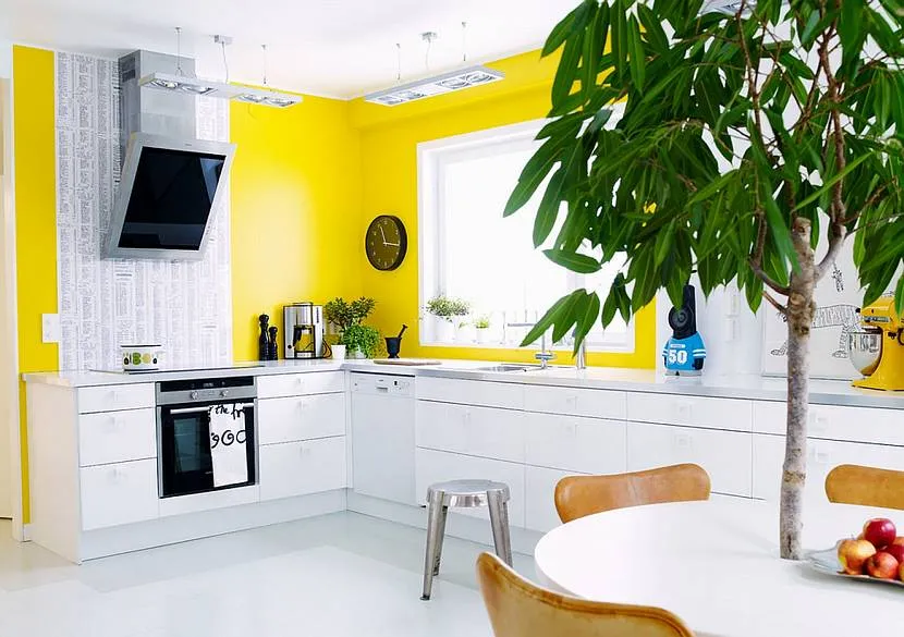 Желтые стены для интерьера в стиле хай-тэк с тематической картинойИсточник mwshouse.blogspot.com