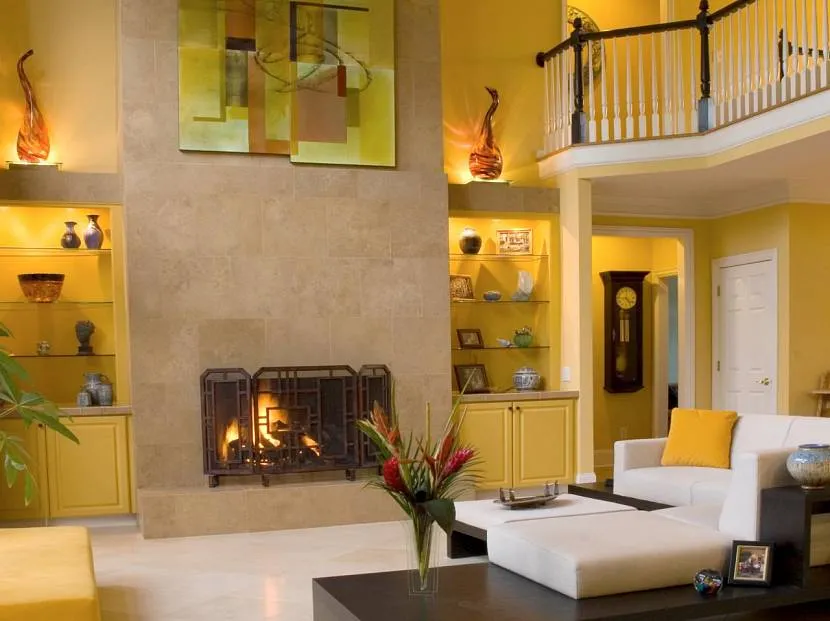 Оформление комнаты в желтом цвете интерьера на большой площадиИсточник dizajn-gostinoj.com