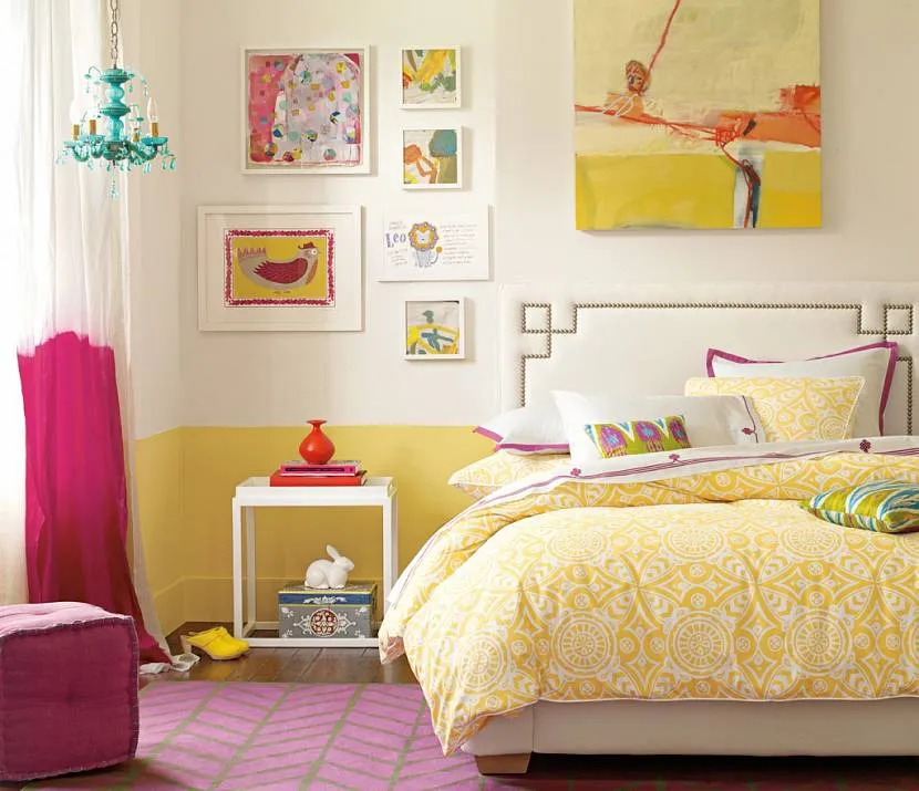 Желтая мебель и шторы в светлой спальнеИсточник pinterest.co.uk