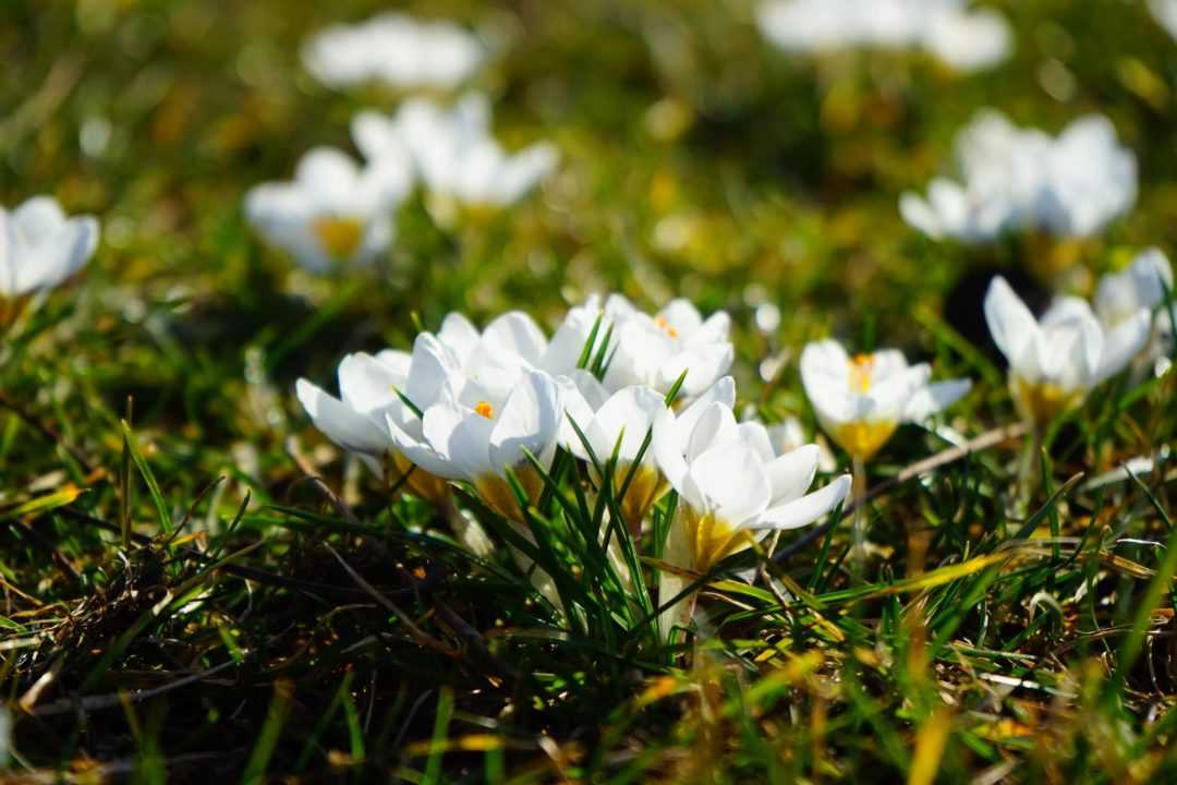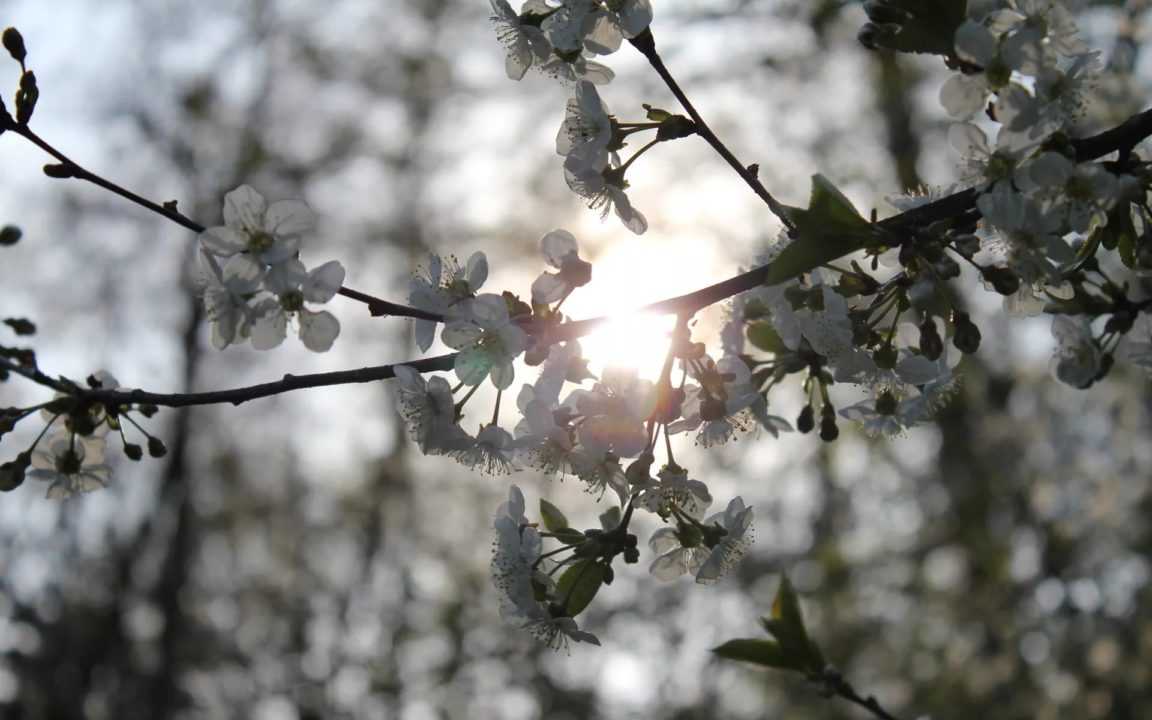 Весеннее солнце ласкает белые цветочки