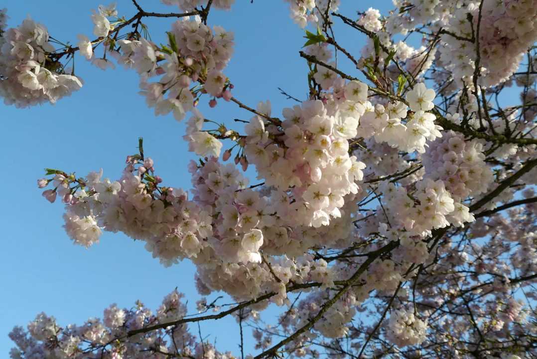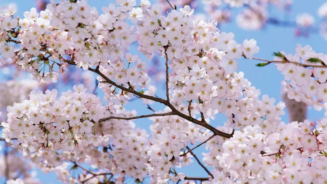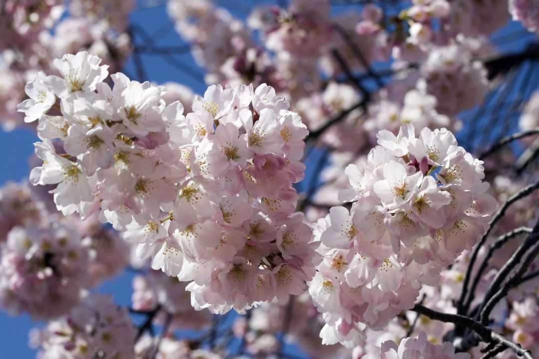 Очаровательное сочетание голубого неба и нежно-розовых цветков