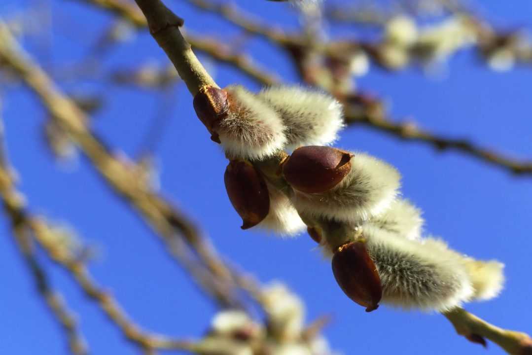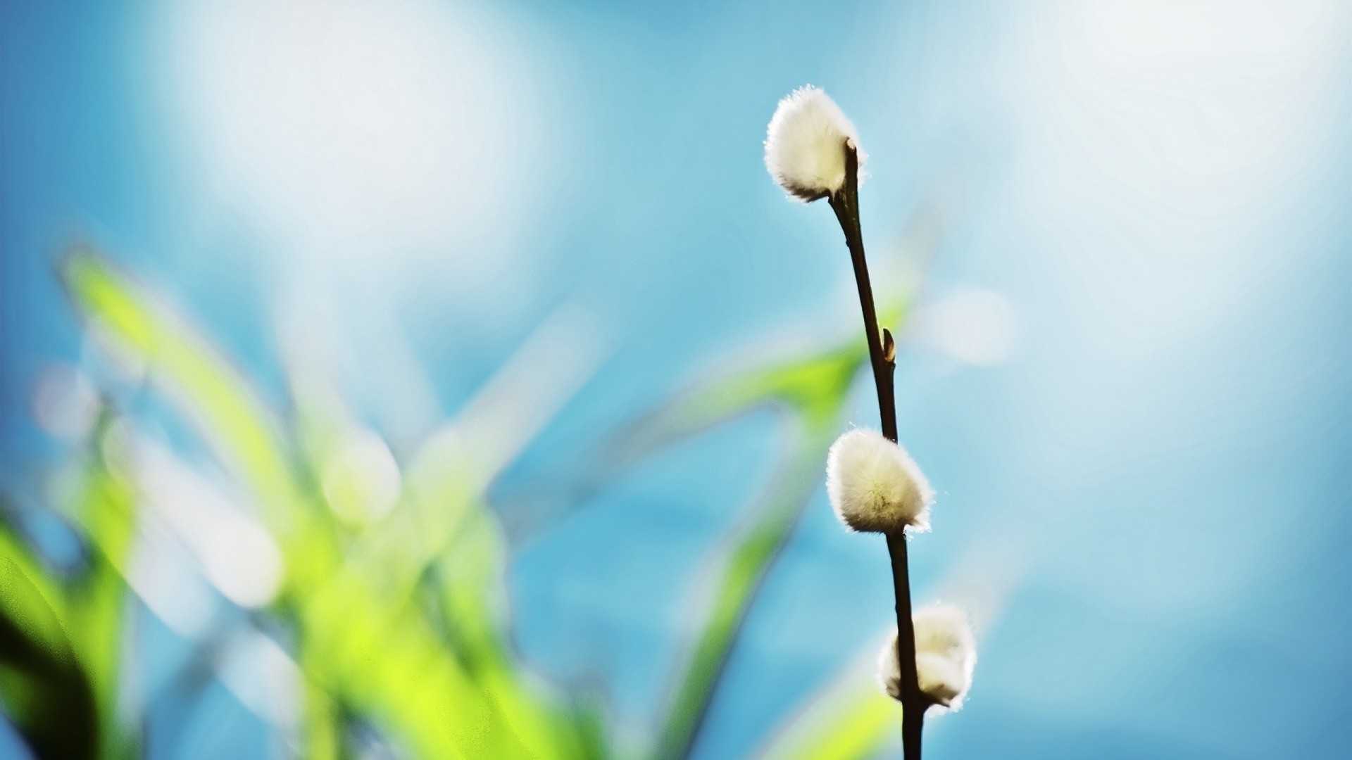 Красивый салатово-голубой фон для набухших волосатых почек
