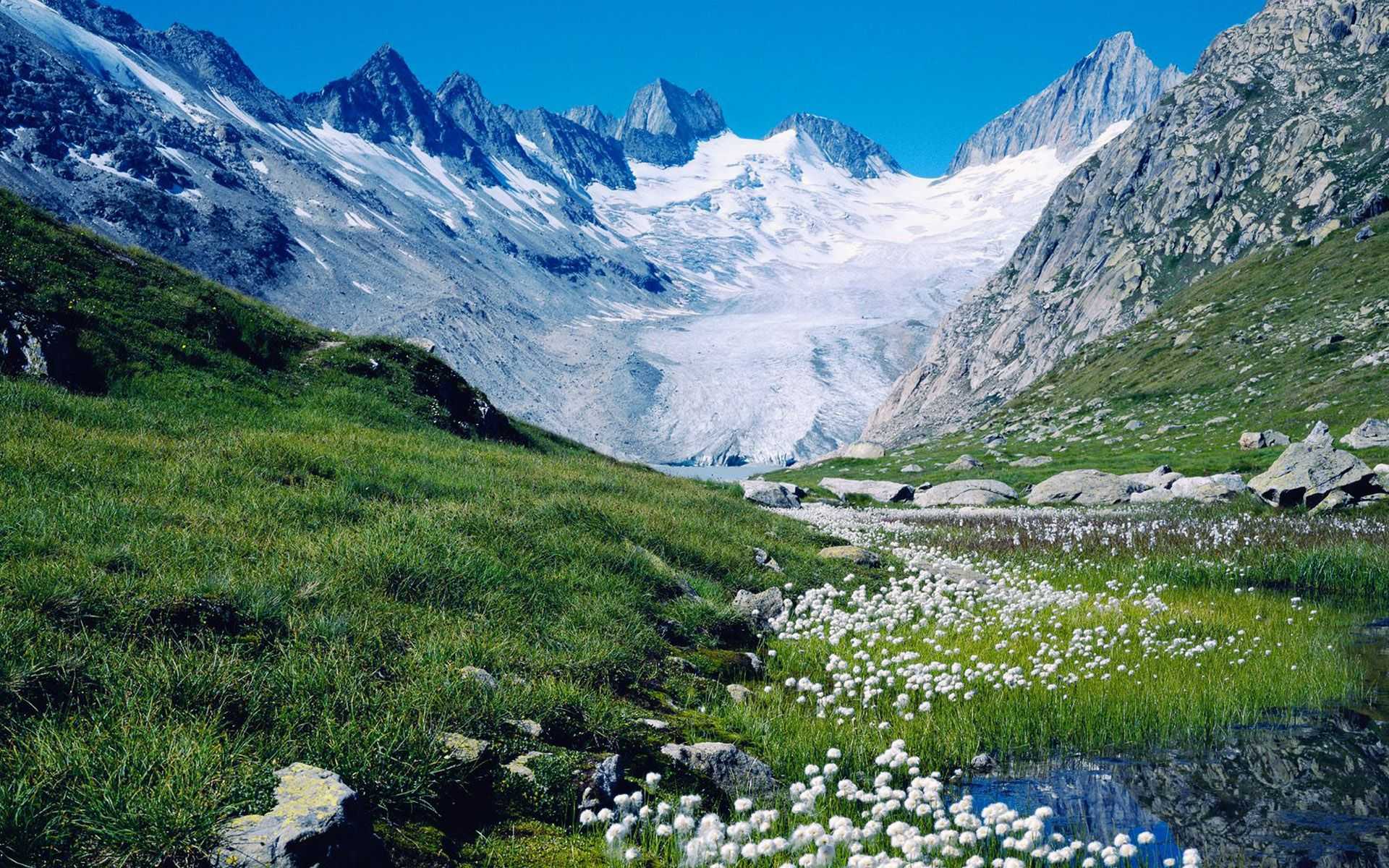 Горный склон, усыпанный красивыми весенними цветами