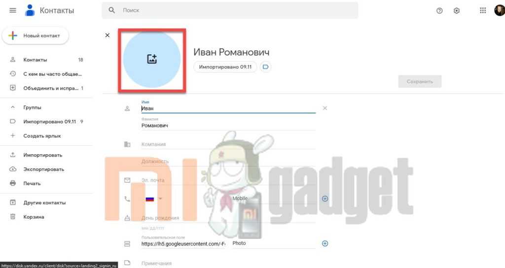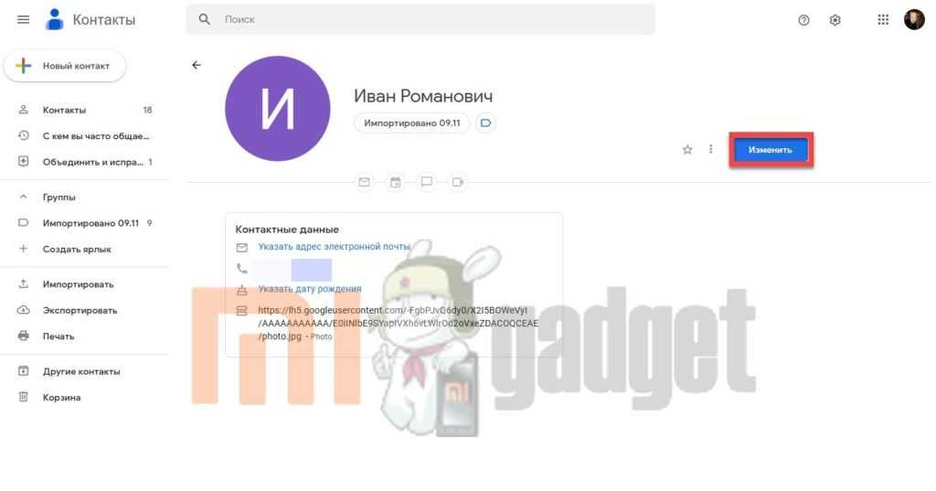 Фото звонка на Redmi или Xiaomi можно изменить или установить также в учётной записи Гугл. Выполнять эту операцию можно как на ПК в десктопном браузере, так и в мобильной версии на смартфоне. Однако рекомендуется использовать именно компьютер или ноутбук, поскольку так редактировать абонентские карточки удобнее. Да и нет гарантии, что нестандартный мобильный браузер правильно отобразит все элементы.